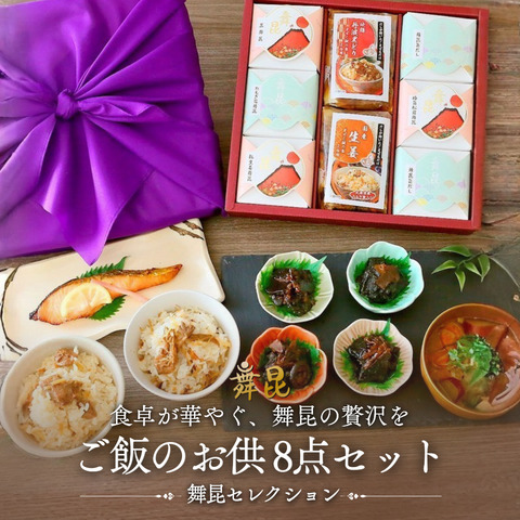 舞昆ご飯のお供ギフト【8点入り】(黒舞昆・たもぎ茸舞昆・極旨松茸舞昆・粒生姜舞昆・舞昆旨だし・丹波地鶏混ぜご飯の素・生姜まぜご飯の素)