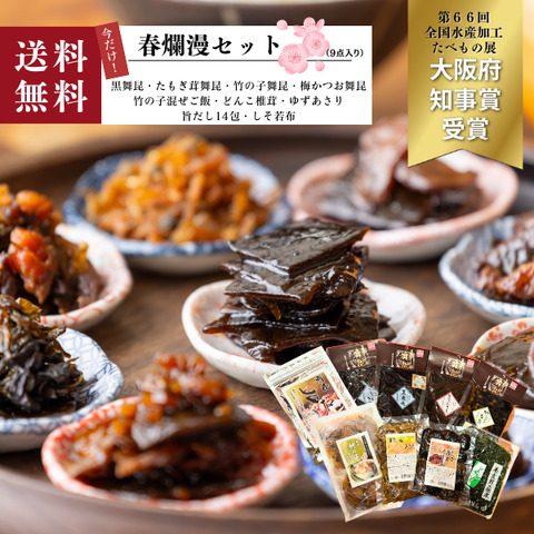 春爛漫セット(9点) (黒舞昆・たもぎ茸舞昆・竹の子舞昆・梅かつお舞昆・舞昆旨だし・竹の子混ぜご飯の素・どんこ椎茸うま煮・しそ若布・柚子あさり)
