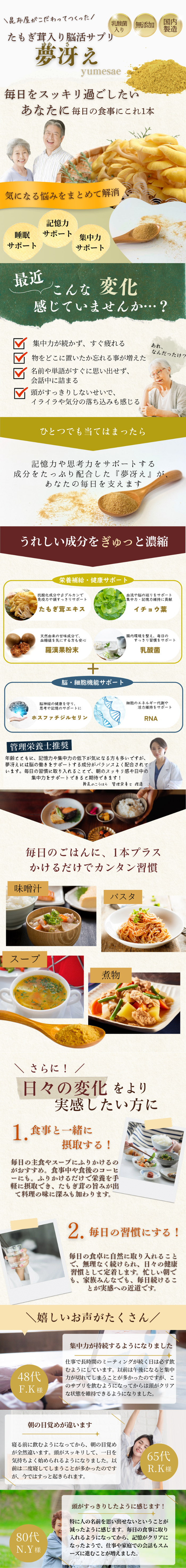 <夢冴え>たもぎ茸・旨みふりかけサプリ(7包入)