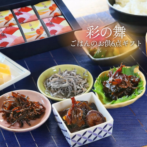 彩の舞【ご飯のお供6点入り】 (黒舞昆・たもぎ茸舞昆・ぷちぷちきくらげ・国産無添加塩こんぶ・舞昆旨だし) 3,180円 -